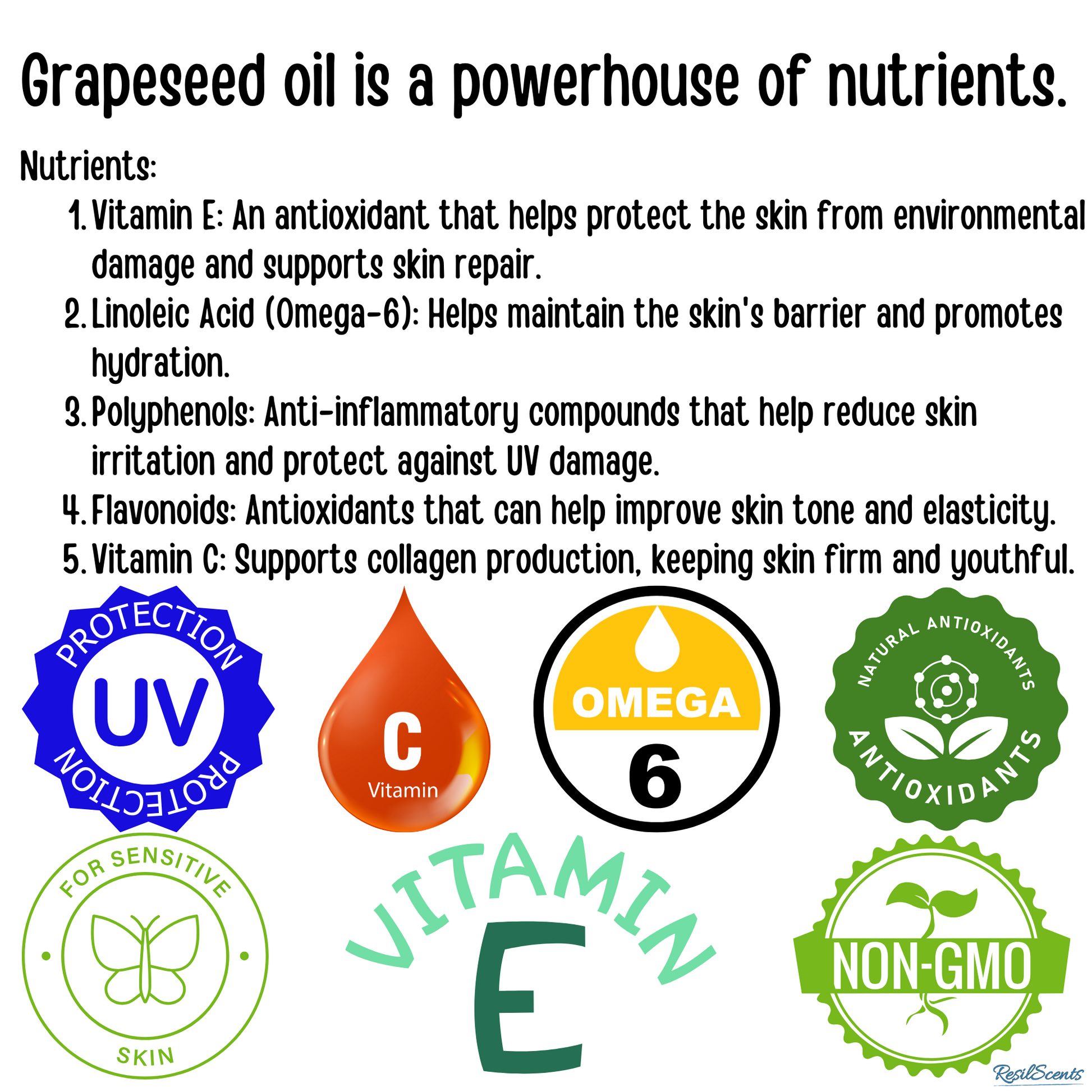 Skin-safe grapeseed oil base absorbs smoothly and keeps scent close without irritation.